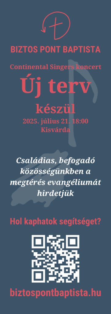 Ha bővebben érdekel a Bibliából hirdetett evangélium, kérdésed van, lelki segítségre van szükséged, vagy megszólított Isten és befogadtad Jézust a szívedbe, vagy szeretnél megtérni:
