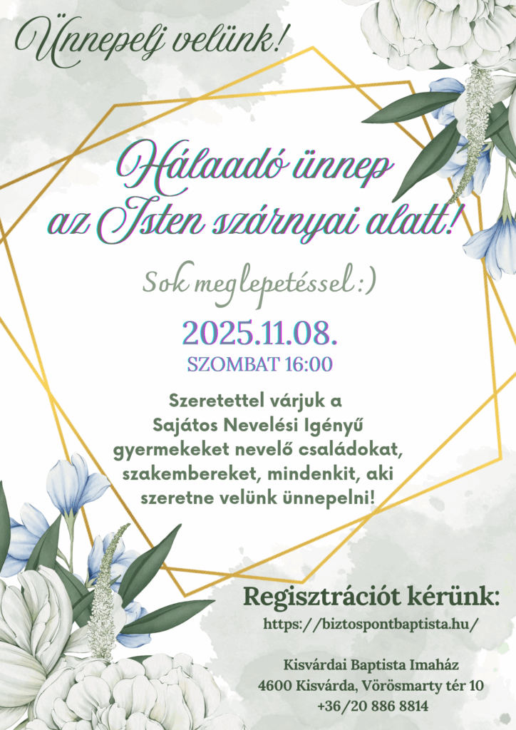 SNI Szülőklub Hálaadó ünnep az Isten szárnyai alatt | 2025.11.08. szombat 16:00