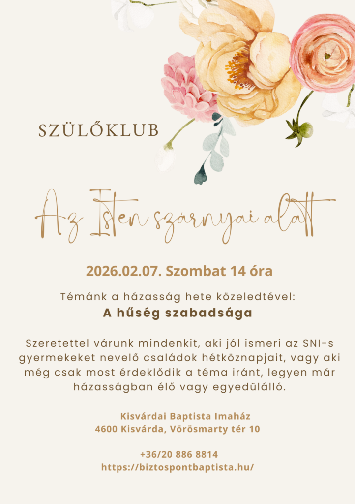 Várunk szeretettel a legközelebbi SNI szülőklub találkozásra vagy közösségi programjainkra! Baptista imaházaink címei megtalálhatók a kapcsolat menüpont alatt.